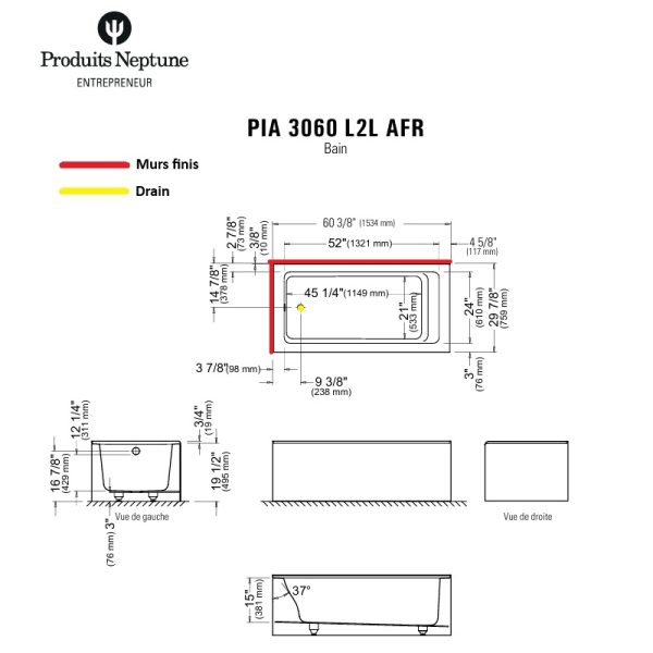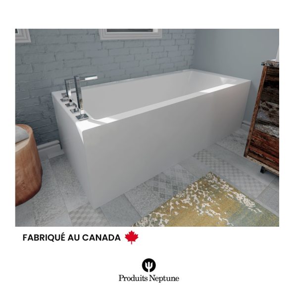 Produits Neptune® propose fièrement une gamme de produits fabriqués au Québec.  Ce bain de coin avec jupe de forme arrondie, bride de carrelage intégrées est idéal pour la rénovation et permet de gagner de l'espace dans la salle de bain.