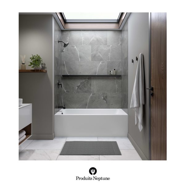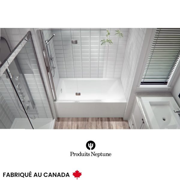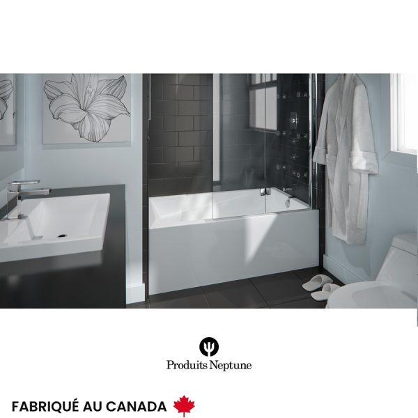 Affirmer haut et fort notre différence, innover avec une offre pertinente de produits, rester branchés sur les besoins du consommateur et être à l’écoute de nos partenaires d’affaires, voilà les principes qui traduisent l’intime conviction de Produits Neptune : la vie est plus belle lorsqu’on s’entoure de beauté. Bains, douches, portes de verre, lavabos et toilettes, Produits Neptune est la première compagnie en Amérique du Nord à obtenir la certification ÉCORESPONSABLE.Produits Neptune – PIA 3060 – Bain îlot installation en alcôve (3 murs)