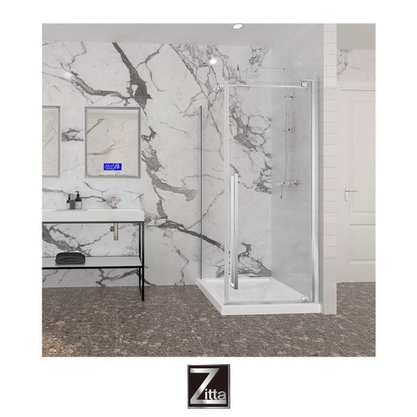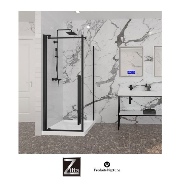 ZITTA – Ensemble porte à pivot AMALY et base de douche acrylique avec cache drain