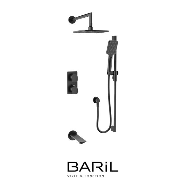 Baril – PETITE B04 – Ensemble de bain-douche thermostatique 3 fonctions avec rail, pluie et bec – Noir Titane