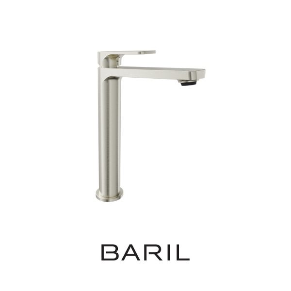 Baril – PETITE B04 – Robinet de lavabo haut pour vasque – Nickel Brossé